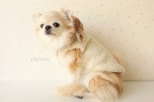 model : チワワ 3.5kg (首回り24cm、胸囲39cm、背長さ36cm) Mサイズ着用