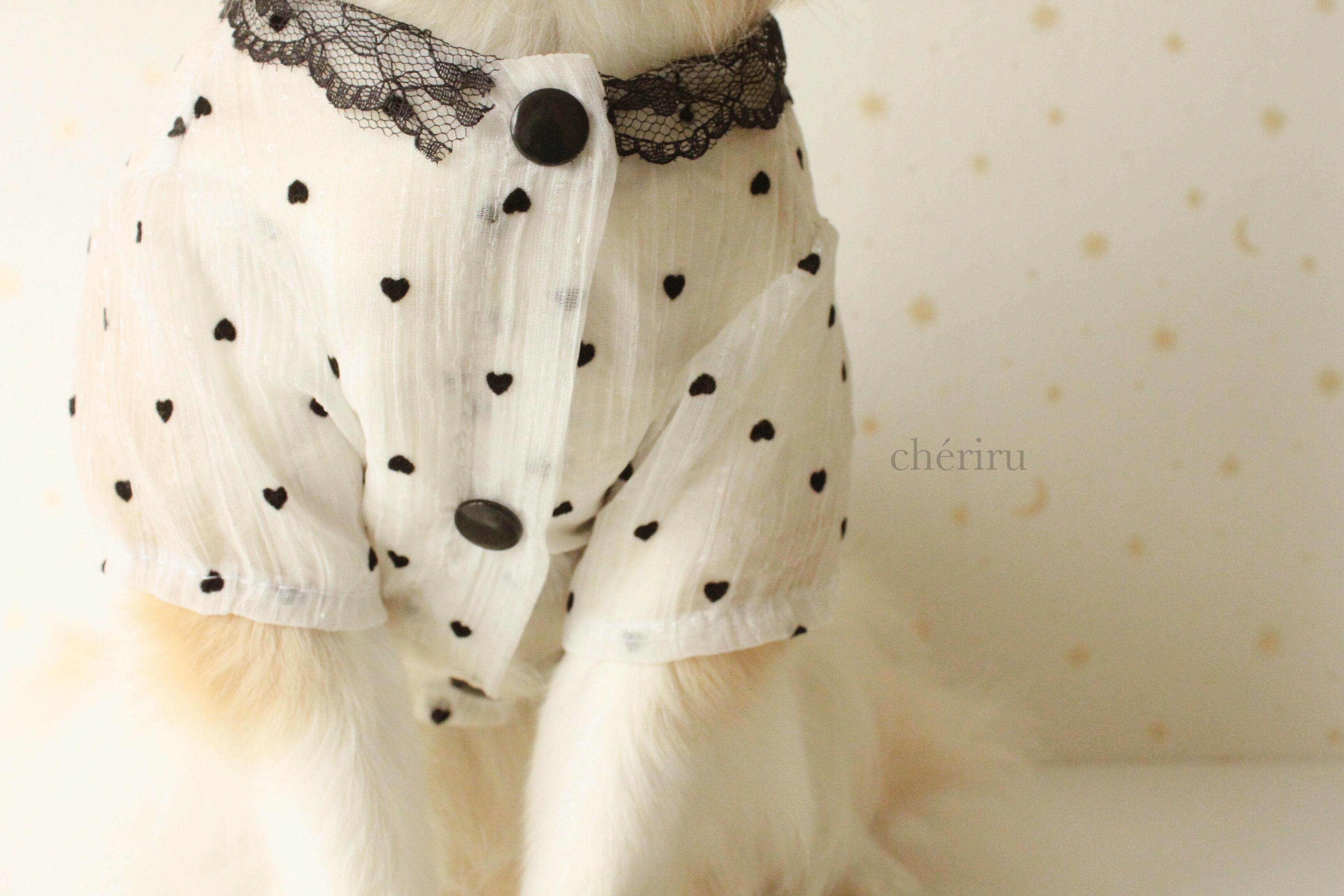 model : チワワ 3.6kg(首回り24cm、胸囲39cm、背長さ36cm) Mサイズ着用