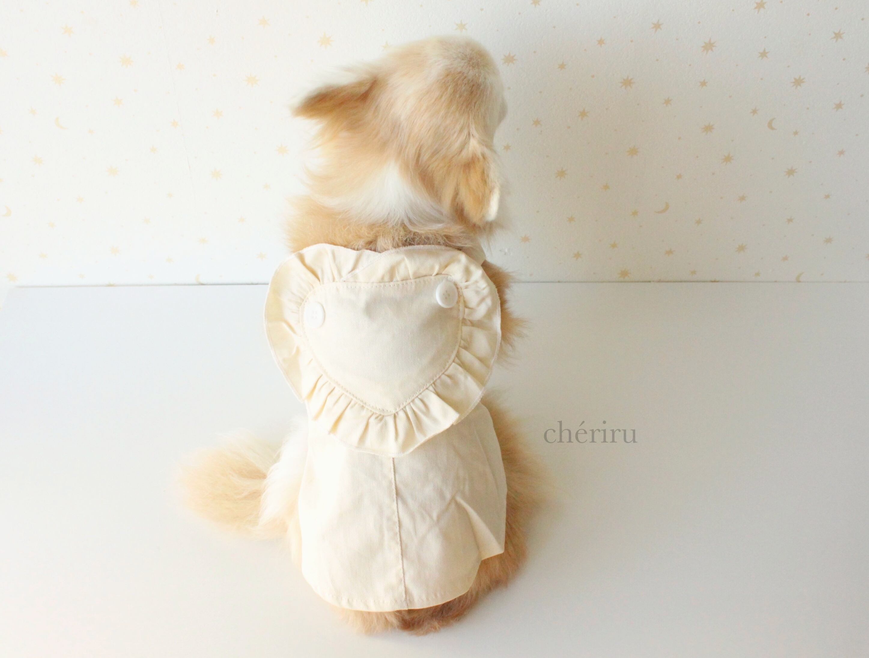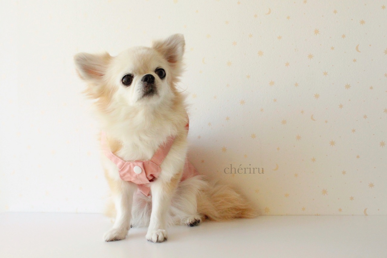 model : チワワ 3.6kg(首回り24cm、胸囲39cm、背長さ36cm) Mサイズ着用